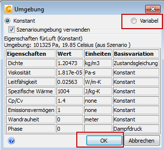 In den folgenden Schritten definieren Sie die Eigenschaften der Luft, die sich mit der Temperatur verändern. Damit kann die natürliche Konvektion die Luftströmung beeinflussen.