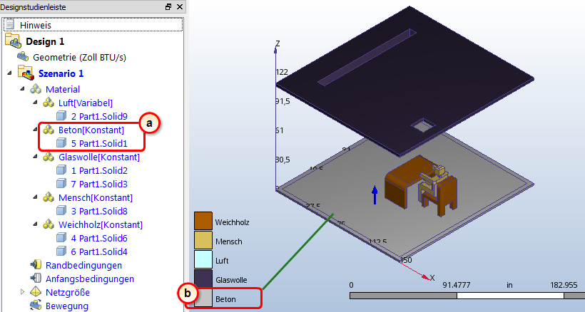 In der Designstudienleiste können Sie anhand der Teilfarbe überprüfen, ob das Material Beton korrekt zugewiesen wurde: