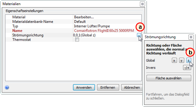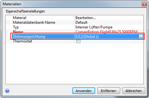 6. Stellen Sie sicher, dass die Strömungsrichtung 0, 0, 1 ist, und klicken Sie auf Anwenden.