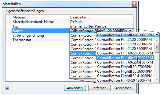 4. Wählen Sie im Menü Name die Option ComairRotron FlightII 60x25 5000 RPM.