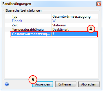 4. Geben Sie in die Zeile Gesamtwärmeerzeugung den Wert 5 ein.