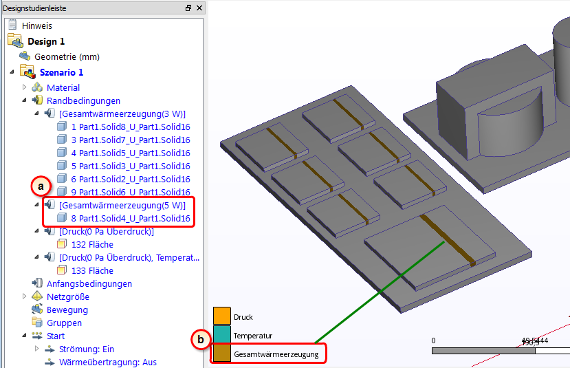 6. Um zu überprüfen, ob die Randbedingung korrekt auf den Chip angewendet wurde, überprüfen Sie die Designstudienleiste und den Farbstreifen auf dem großen Chip.