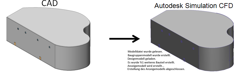 Autodesk® CFD ersetzt automatisch alle vollständig eingeschlossenen Kavitäten durch interne Volumen, wenn das Modell aus der CAD-Anwendung übertragen wird.