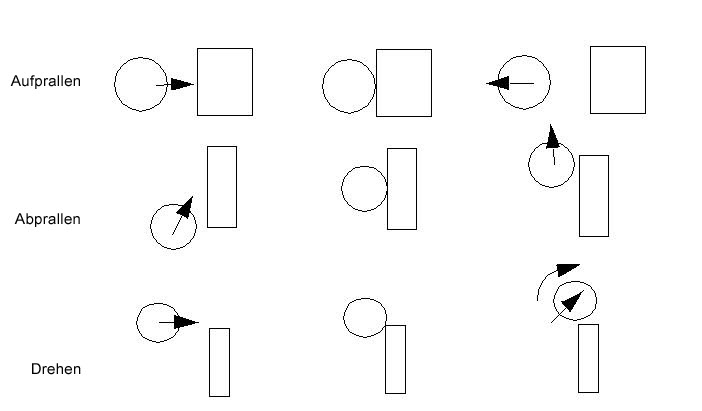 Objekte in freier Bewegung reagieren bei Kollisionen mit Wänden und Festkörpern auf eine Weise, durch die der Durchbruch durch andere Objekte verhindert wird.
