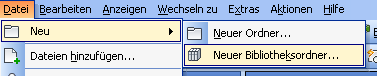 Wählen Sie im Menü Datei die Option Neu ► Neuer Bibliotheksordner. Das Dialogfeld Neuer Bibliotheksordner wird angezeigt.