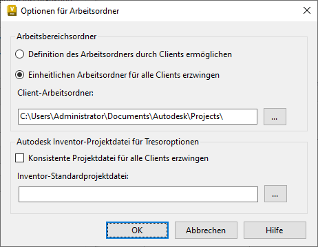 Aktivieren Sie im Dialogfeld Optionen für Arbeitsordner die Option Einheitlichen Arbeitsordner für alle Clients erzwingen.