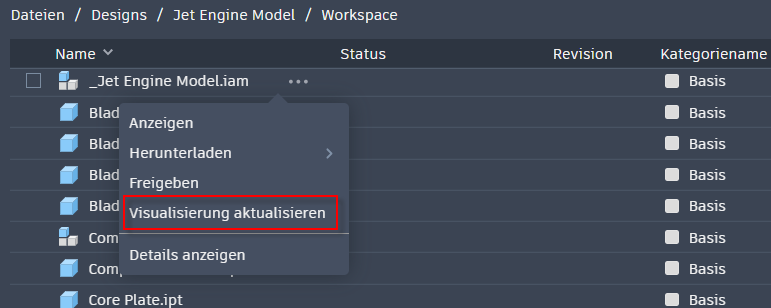 Alternativ wählen Sie den Befehl Visualisierung aktualisieren auf der Detailseite der Datei aus.