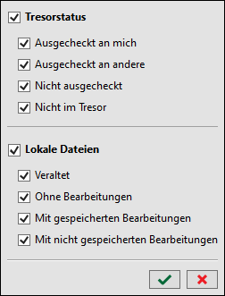 Sie können auch Tresorstatus oder Lokale Dateien auswählen, um alle Optionen in dieser Kategorie auszuwählen.