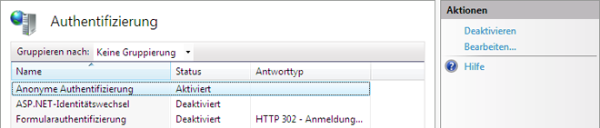 Klicken Sie auf die Option für anonyme Authentifizierung, und vergewissern Sie sich, dass diese aktiviert ist.