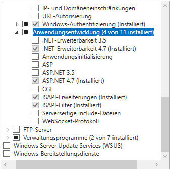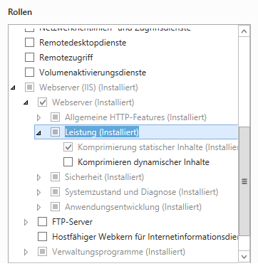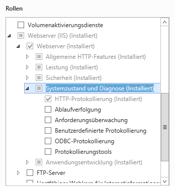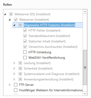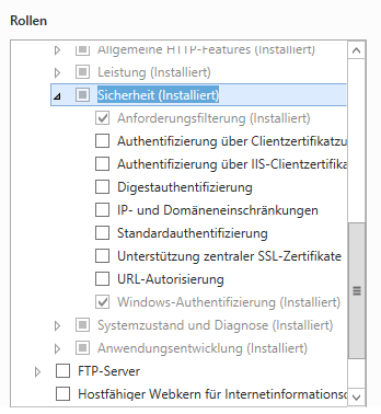 Wählen Sie im Abschnitt Serverrollen die folgenden Rollen aus: