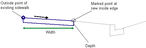 Once this start point is established,footpath structure links are inserted inwards from this point for given width, slope, and depth. If a name is given for Mark Inside Point, a marked point is stored at the new low edge of the footpath.