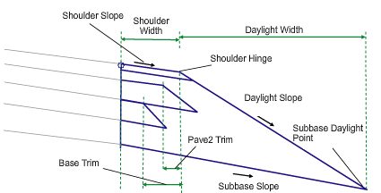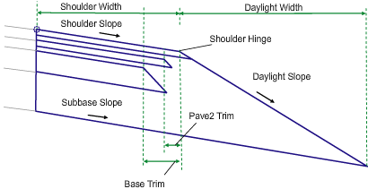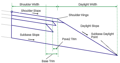 | Pave2 Trim | Reduced width of Pave 2 material to enable subbase interlacing. Side edge of the material layer will have same slope as shoulder daylight slope. | Numeric, positive |