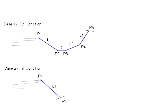 Cut condition only - inside edge of ditch Fill condition only - daylight point |