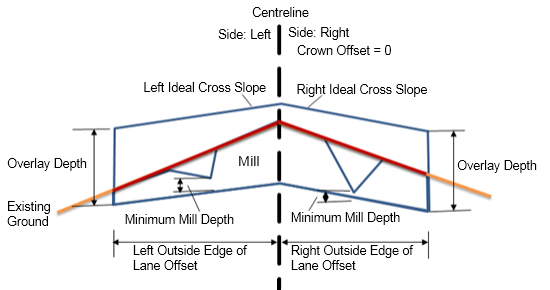 | Right Ideal Crossfall | Specifies user defined right ideal crossfall. | Numeric, negative | -2.00% |
