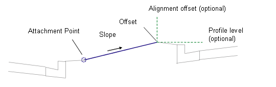 The attachment point is at the beginning of the link. The direction of the link is determined by the location of the given offset and slope.