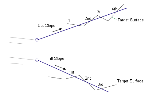 This subassembly is used when a cut or fill daylight slope may have more than one intersection with the target surface.