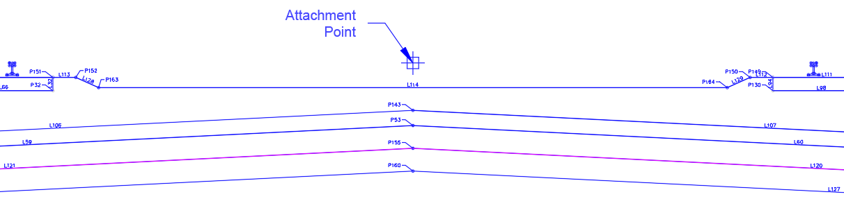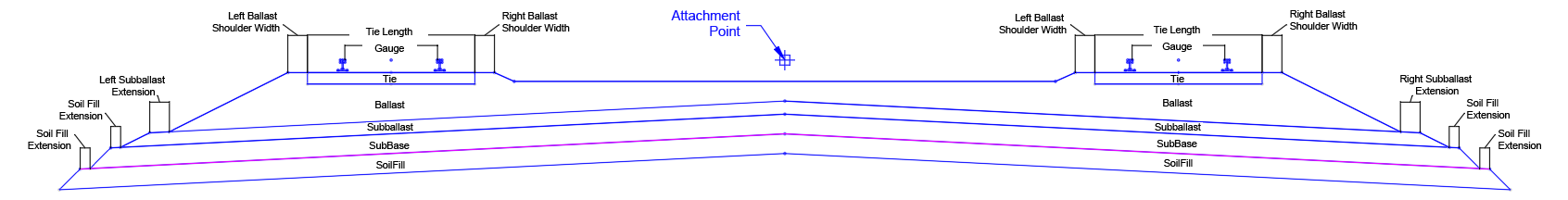 In layout mode the subassembly displays the links comprising the rails, tie, ballast, subballast and side slopes.