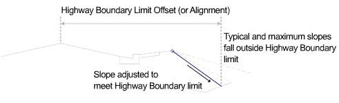 If the typical slope does not fall within the ROW (right-of-way), then a steeper slope is used. If the steeper slope still does not fall within the ROW, the user has options for controlling the behavior.