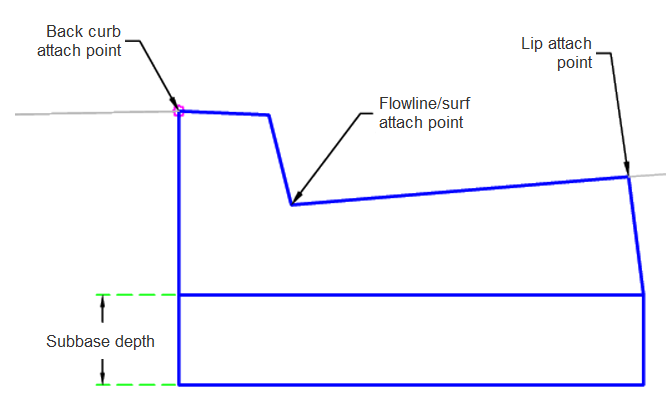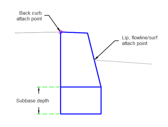 | Attach Point | Specifies where the kerb attach point is. | Lip/ BackKerb / Flowline-Surface |