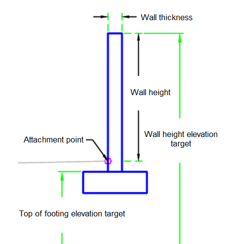 | Wall Height | May be used to override the wall height tie the level of the top of wall to the level of a profile. The following object types can be used as targets for specifying the level: profiles, 3D polylines, feature lines or survey figures. | Optional |