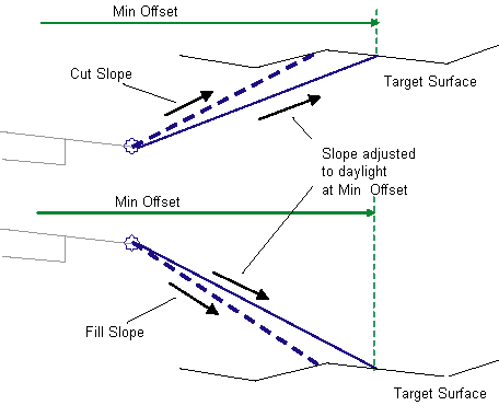 May be used to override the fixed Min Offset and tie the minimum offset to an offset alignment. The following object types can be used as targets for specifying the offset: alignments, polylines, feature lines, or survey figures. |