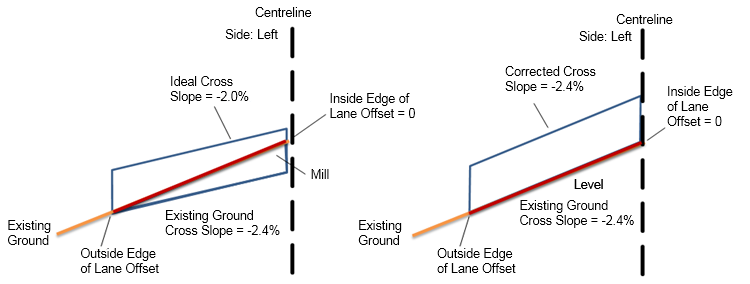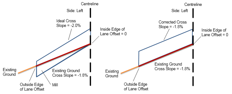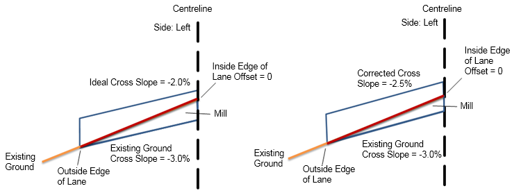 | Corrected Crossfall | The Corrected Cross slope will be -2.5% |