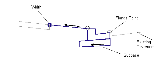 | Flange Point | This will establish the offset value of flange point to start the subassembly. The following object types can be used as targets for specifying this offset: alignments, polylines, features lines, or survey figures. |