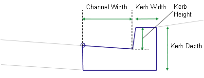In layout mode, this subassembly draws the kerb and channel shape as specified by the input parameter values.