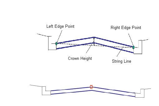 Bottom of overlay surface is computed by offsetting the proposed finish grade (Left Edge point to New Crown Point to Right Edge Point) by Overlay depth value.