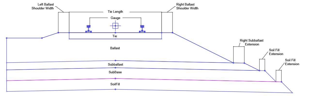 | Subbase Extension | The distance from the toe of the subballast material to the beginning of the side slope of the subbase material | Numeric, non-negative |