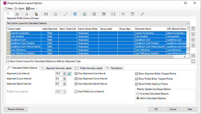 - The following Rail CANT values have been added to the calculated stations list and are available as reports and tables.