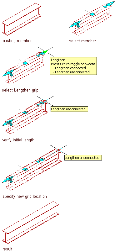 After selecting a grip, you can also enter a value to increase or decrease the length of the structural member.