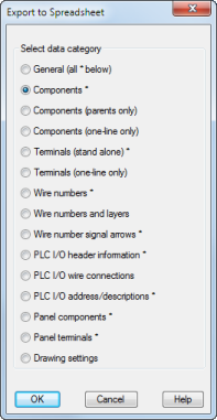 Your spreadsheet edits can update values on existing components, terminals, PLC I/O modules, and wire numbers. It cannot insert new items into the drawings.