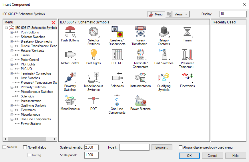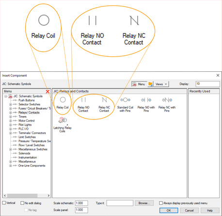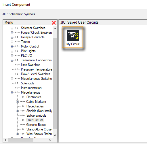 Use Circuit Builder to insert motor control and power feed circuits. Select from various circuit options. Find