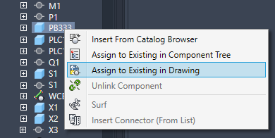 In the active drawing, select the electrical component you want to link with the Inventor part. The component tree view is refreshed to show the linked component.