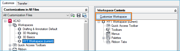 New ribbon tabs are not automatically added to a workspace. The following steps explain how to add the My HYT Tab to the current workspace.