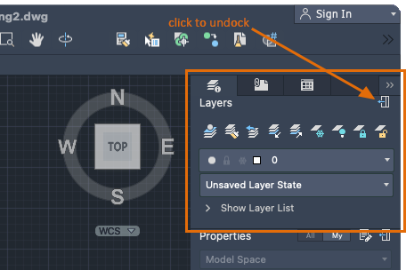 To see how a drawing is organized, use the Layers palette. By default, the Layers palette is docked on the right side above the Properties Inspector. Undock the palette to resize the palette and individual columns within the palette.