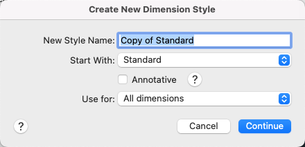Names the new dimension style, sets the style on which to start the new one, and indicates the dimension types to which you want the new style to apply.