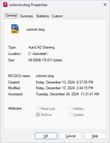 Displays read-only information about the drawing file, which is derived from the operating system.
