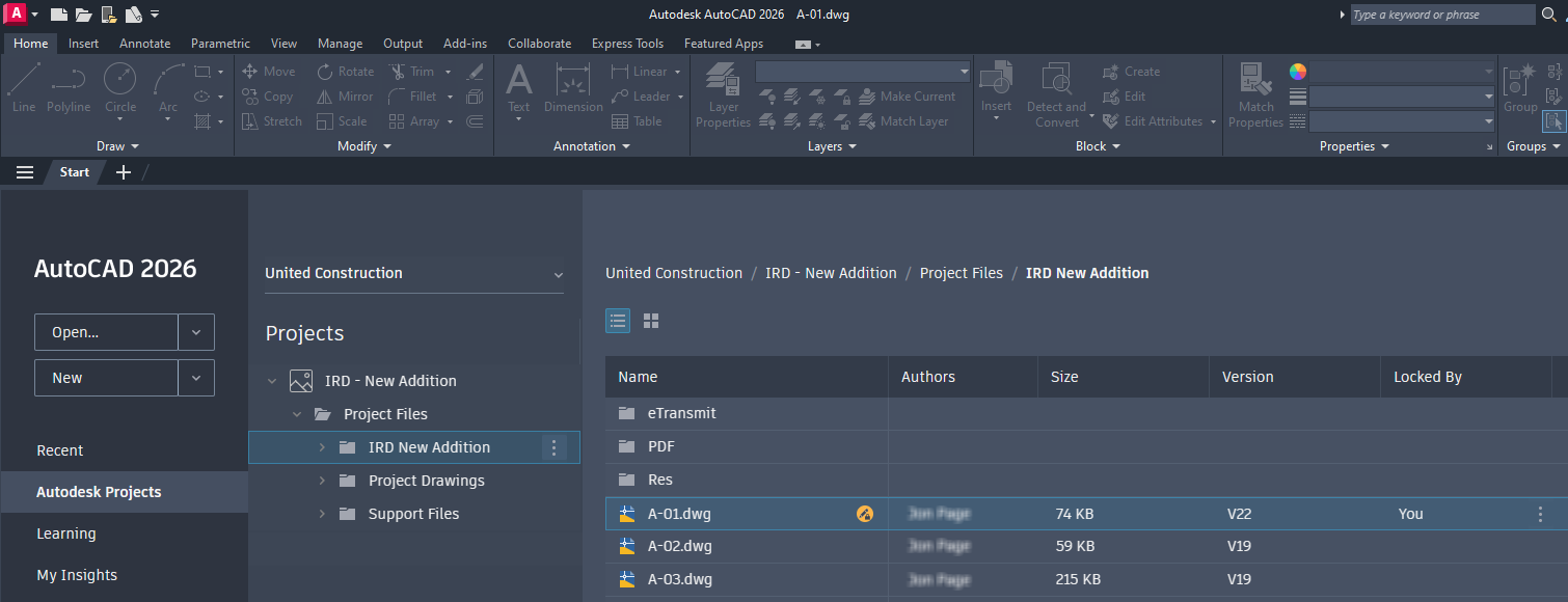 - Browse to and open a drawing within the project.