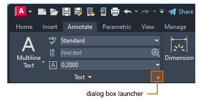 Some ribbon panels provide access to a dialog box related to that panel. To display the related dialog box, click the dialog box launcher is denoted by an arrow icon, , in the lower-right corner of the panel.