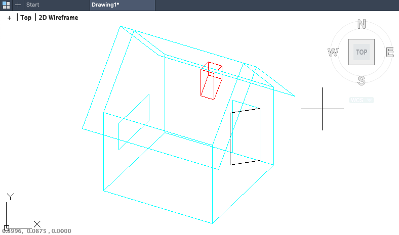 If you press Enter at the Select Objects prompt, DVIEWBLOCK displays a preview image. You can create your own DVIEWBLOCK block in a 1 unit by 1 unit by 1 unit area, with its origin at the lower-left corner. The following illustration shows an example of using the default DVIEWBLOCK to set the view (moving the graphics cursor adjusts the view).