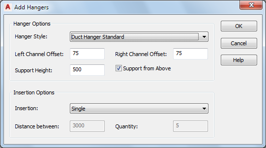 - Under Insertion Options, specify the number of hangers to insert and how to space them: