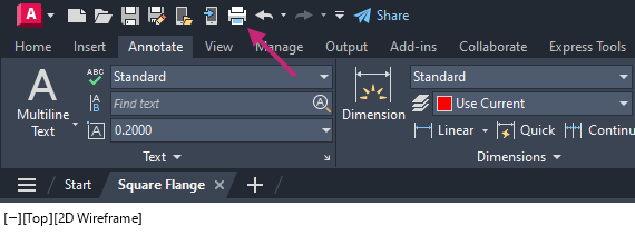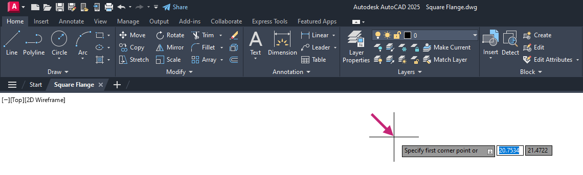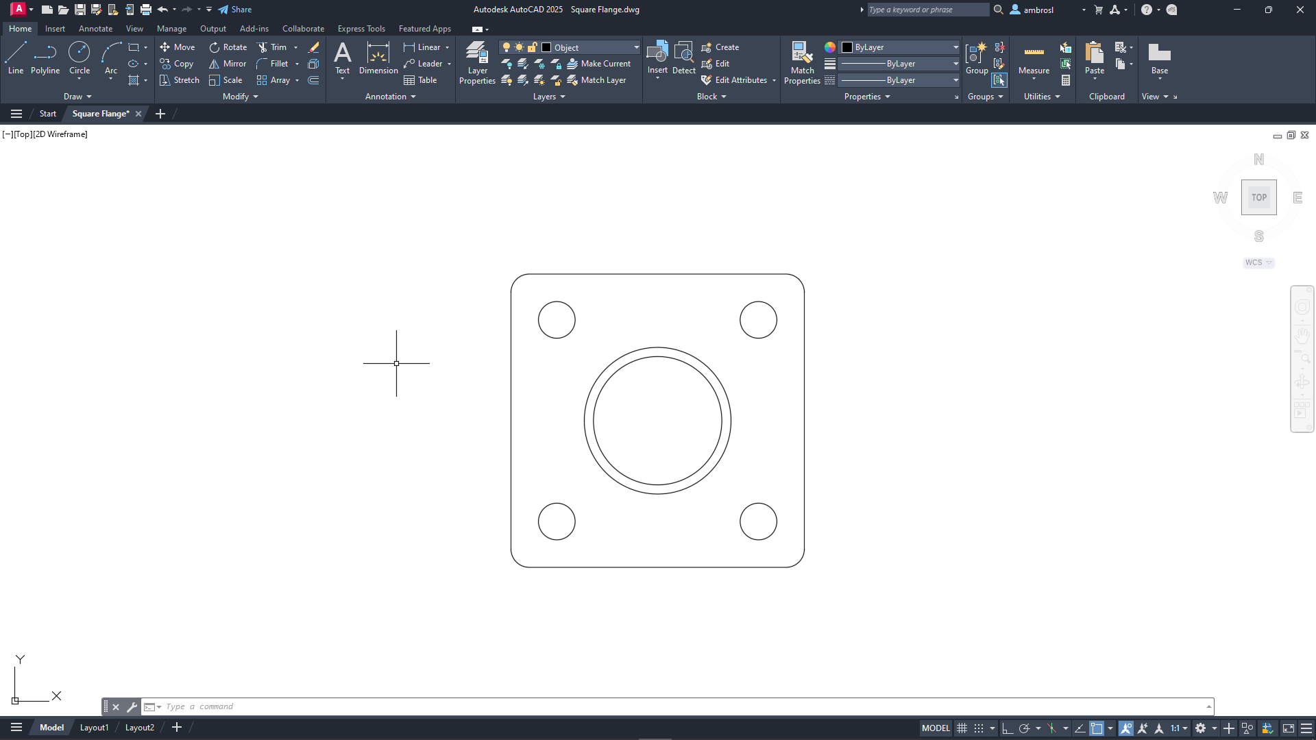 A new drawing file is created and named Square Flange in the Documents folder. Make sure you continue with this file for the remainder of the exercises.
