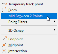 From the Object Snap menu, choose Mid Between 2 Points.