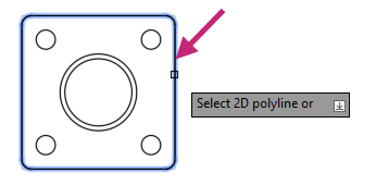 At the Select 2D polyline or [Radius]: prompt, select the rectangle.