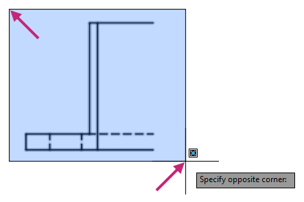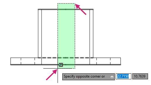 At the Specify opposite corner: prompt, in the drawing area, click a point near (2) in the previous image.