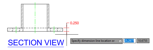 At the Specify dimension line location or [Mtext/Text/Angle/Horizontal/Vertical/Rotated]: prompt, specify a point to the right to place the dimension.