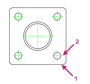 At the Specify first extension line origin or <select object>: prompt, specify the endpoint indicated at (1).