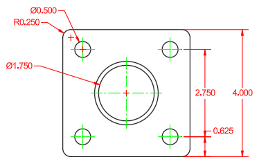 The completed drawing can be found in the Squared Flange - Complete.dwg file.